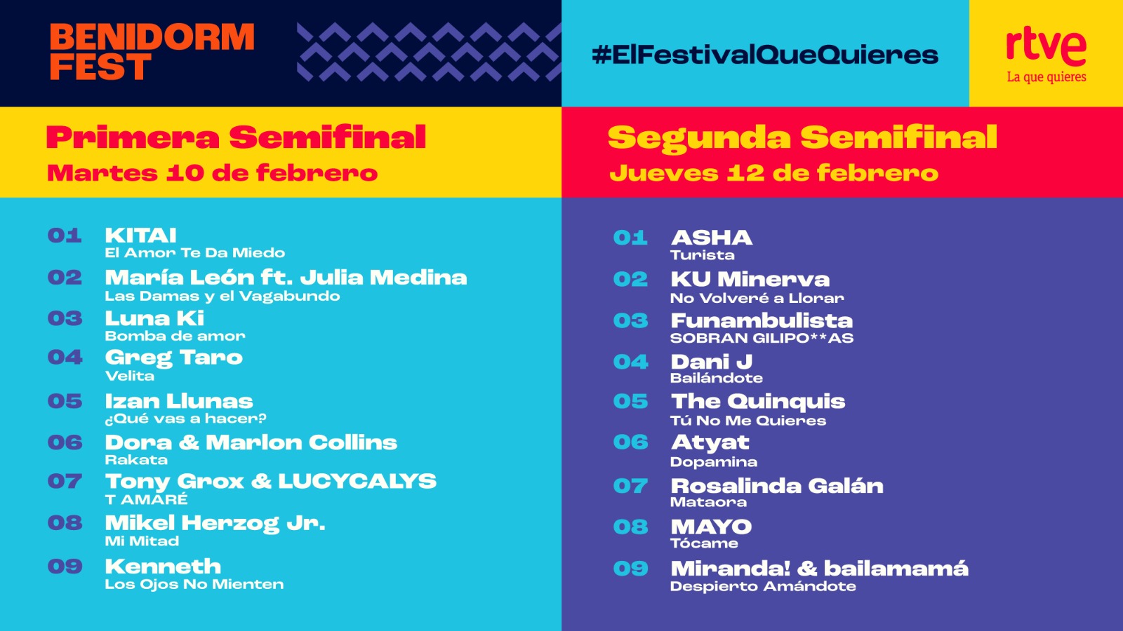 La segunda semifinal seguirá el siguiente orden: